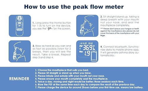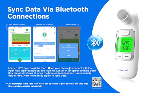 Spirometro digitale con misuratore di portata avanzata e Bluetooth per bambini e adulti, monitor domestico per asma e BPCO, PEF FEV1