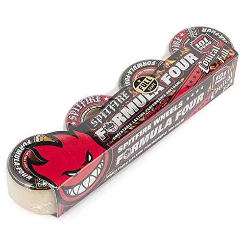 La rinomata mistura d'uretano Formula Four Sviluppata dalla spitfire spiccano tra le ruote da skate per la loro velocita', la loro eccezionale capacita di non incappare in FLATSPOT e il controllo che conferiscono al tuo skate. Queste ruote FORMULA FOUR (52mm-53mm-54mm) hanno una durezza di 101a e uno shape Conical full che si traduce in un battistrada largo e bordi dalla forma conica Durezza 101a