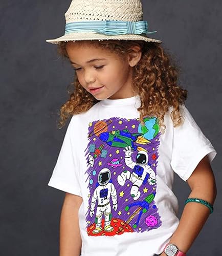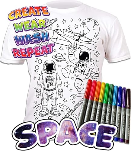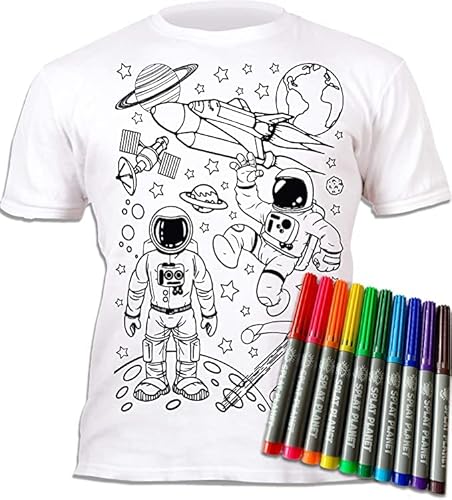 Splat Planet Colora Spazio T-shirt Uomo E Razzo Spaziale Con 10 Penne Magiche Lavabili Atossiche - T-shirt Da Colorare, Da Colorare E Da Lavare (12-13 Anni) Bianca