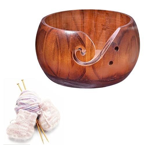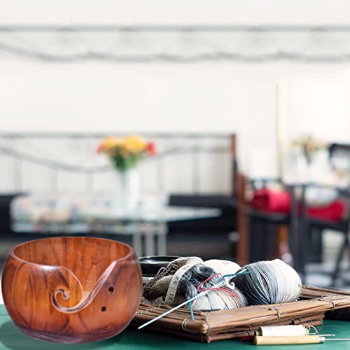 Spldsun Ciotola Filato in Legno, Portatile Maglieria Ciotola, con Fessura Il Filo e Fori, per Lavori ad Ago, Uncinetto, Maglia, Decorazioni per Casa