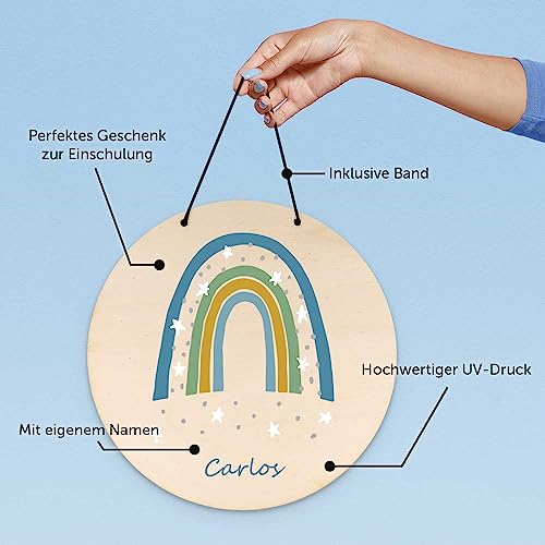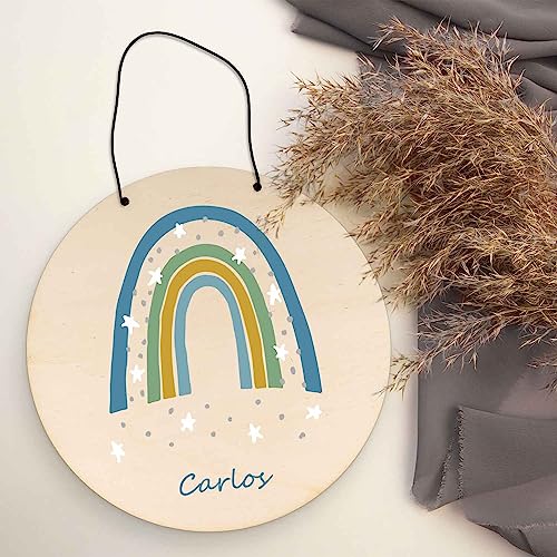 Splendida targa per porta con nome in design arcobaleno, per cameretta dei bambini, per ragazze e ragazzi, regalo personalizzato, colore ragazzo