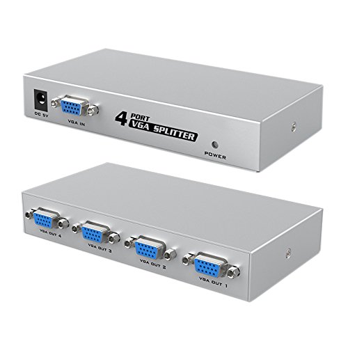? VGA Splitter Distributore: questo segnale VGA Splitter Box permette 1 ingresso segnale VGA distribuito in 4 uscita VGA. 'Il monitor 4 uscita può visualizzare la stessa immagine da il segnale di ingresso simultaneamente.
