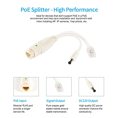 Splitter PoE Tonton 2 Pezzi Splitter PoE Uscita 12V 2A con Standard IEEE 802.3af/ab/u Conforme 10/100Mbps Power Over Ethernet Adattatore Splitter per Telecamera IP Cavo di Sorveglianza CCTV