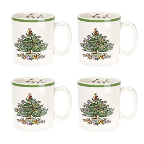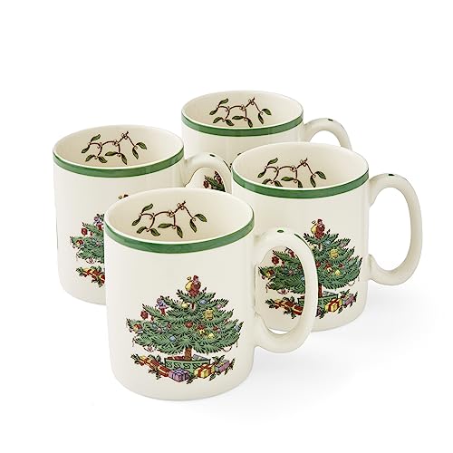 Spode - Set di 4 tazze con albero di Natale, in ceramica, multicolore