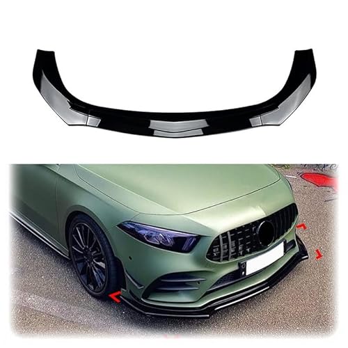 Spoiler Anteriore Fibra Carbonio Look per Mercedes per Benz per A Classe per W177 2019-2022 per AMG Auto Labbro Anteriore Paraurti Spoiler Spoiler paraurti Anteriore (Colore: Nero)