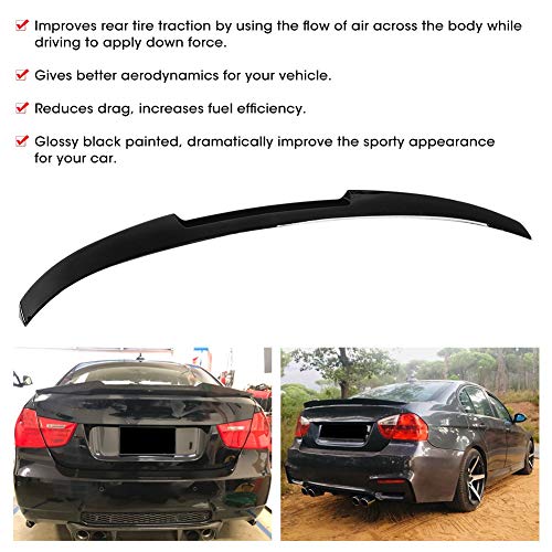 Spoiler per baule posteriore, nero lucido Refit per spoiler con coperchio per baule alto stile M4 adatto per 3 serie E90 M3 2006-2011, nero