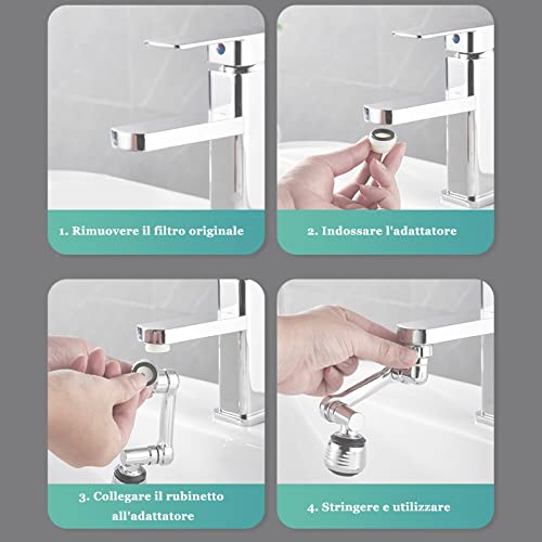[Rotazione di 1080 e 720 gradi] Copri ogni angolo del bacino con la rotazione multipla di 360 gradi di ogni parte. rubinetto rotante 1080 gradi è facilmente ripiegabile ed espandibile. È possibile ruotare rapidamente l'aeratore nella direzione desiderata.