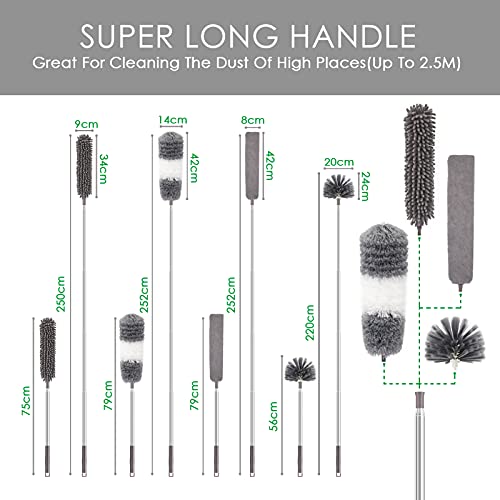 ✅【5PCS Duster di fibra ultrafine】I set di swuster in fibra ultrafine contiene 1 asta telescopica e 4 sostituzione. Tipo A Digitare uno scorpione di pollo adatto per la pulizia della polvere angolare e lampadario. Tipo B Schnauzer Adatto per capelli e polvere nella macchina per la pulizia. Tipo C Digitare la spazzola gap adatta per la pulizia di spazzole e buccia di carta da interno. Tipo D Spazzola per ragnatela a forma, adatto per ragnatela sul soffitto di pulizia