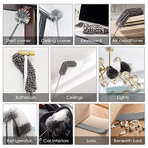 ✅【Flessibilità】Il piumino per spolverare essere ruotato di 360°, e la testa della fibra ultrafine può essere curva e flessibile. La testa di fibra ultrafine copre grande, è possibile piegarli facilmente in angoli diversi. Il pennello del soffitto può aiutarti a pulire l'area nascosta come libreria, armadio, aria condizionata, Spolverino per Polvere pulire facilmente la tua casa ogni angolo. Spolvero Duster E non devi preoccuparti di graffiare pareti, soffitti, finestre e divani
