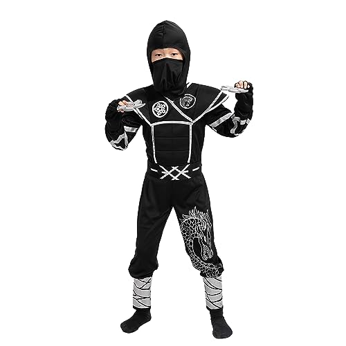 Lavaggio a mano a freddo. Linea Asciutta. Non usare la candeggina. Test di sicurezza approvato. Costume di Halloween unico e facile da indossare per una festa a tema ninja. ideale per il concorso di costumi di Halloween Instaworthy! Aggiungi tanto divertimento alla tua festa di Halloween e ad altre attività a tema!