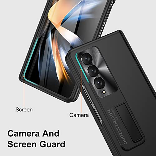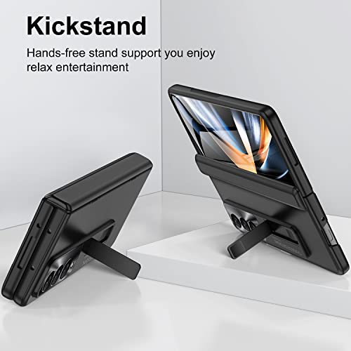 SPOOVCTO Custodia ultra sottile per Galaxy Z Fold 4, con cerniera a molla all-inclusive, protezione per cerniera Z Fold 4, con pellicola salvaschermo temperato, per Samsung Fold 4, colore: nero