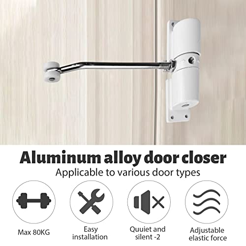 Materiale di alta qualità: il chiudiporta automatico è realizzato in lega di zinco di alta qualità e acciaio inossidabile con forte capacità di carico, chiudiporta a molla aspetto monopezzo e design a doppia molla con processo di galvanizzazione, non facile da deformare, antiruggine, resistente alla corrosione e durevole.