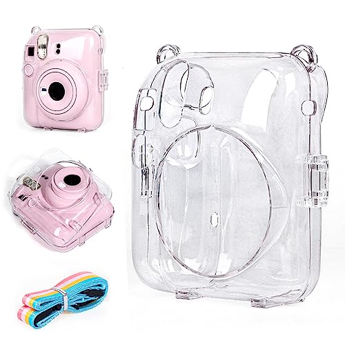 Sporgo Custodia compatibile con Instax Mini 12: fotocamera istantanea per bambini, con cinturino regolabile, mini custodia portatile per fotocamera istantanea, custodia trasparente, trasparente
