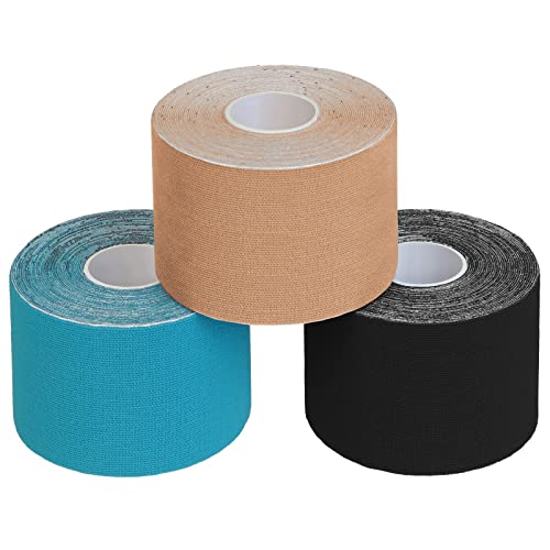 BB Sport 3 Rotoli Nastro Kinesiologico 5 m x 5,0 cm Diversi Colori E-Book Esempi Applicazione Tape Kinesiologico Muscolare Cerotto, Colore:colorato