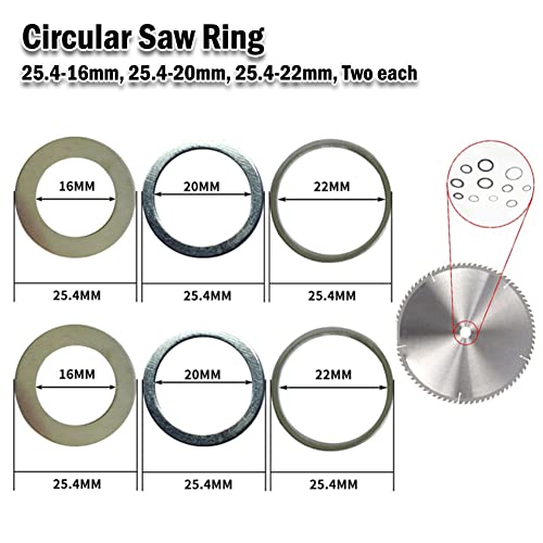 La confezione include 6 boccole per lama per sega, le dimensioni includono 25,4-16 mm, 25,4-20 mm, 25,4-22 mm, due ciascuno.