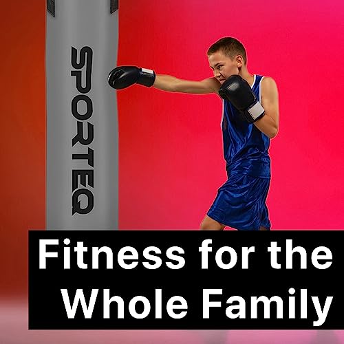 Sporteq Dyno - Sacco da boxe pesante imbottito per tutte le età e i sessi, anello da appendere in acciaio e attacco al pavimento, per boxe, arti marziali, uso domestico e commerciale