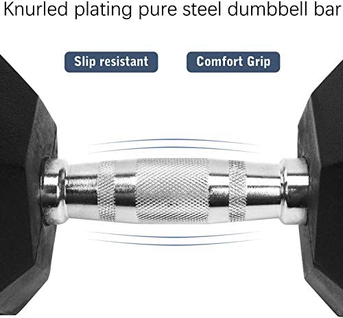 Pesi anti-rotolo: i bordi piatti del manubrio esagonale impediscono di rotolare durante l'uso. Il rivestimento in gomma resistente sul manubrio è progettato per proteggere i pavimenti di casa e palestra da danni agli urti, oltre a ridurre al minimo il rumore