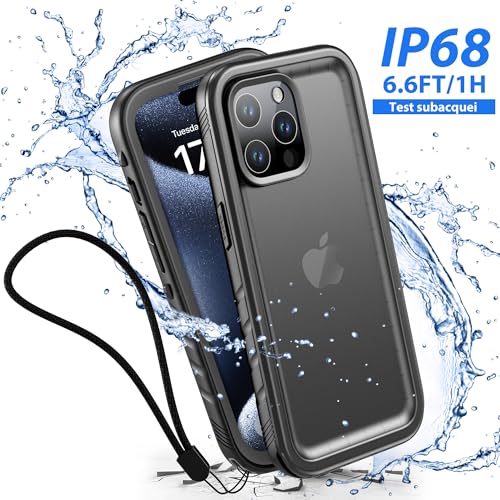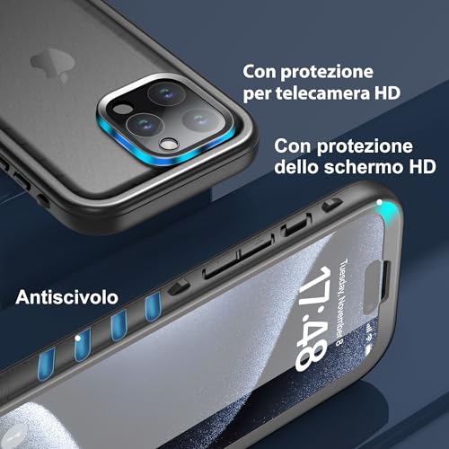 SPORTLINK Cover iPhone 15 Pro Impermeabile - 360 Gradi Full Body Armor Militare Protettiva [IP68] [6FT Antiurto] Custodia Antipolvere Subacquea con Fotocamera/Schermo Protezione (Nero)