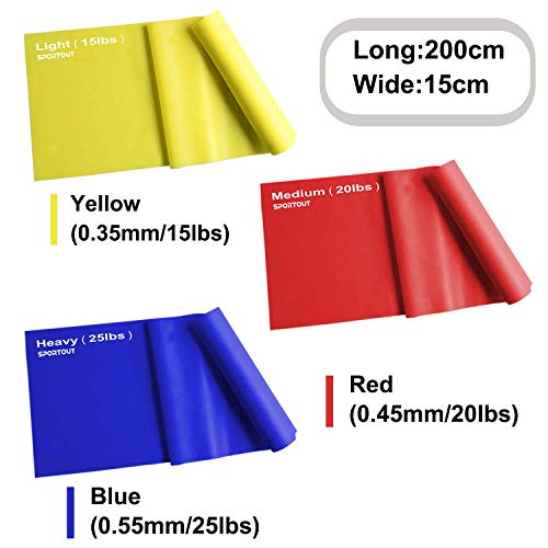 Sportout Set di fasce elastiche di resistenza, 2 m, ultra lunghe, 3 livelli di resistenza, con guida e borsa, ideali per yoga, balletto, pilates, fisioterapia