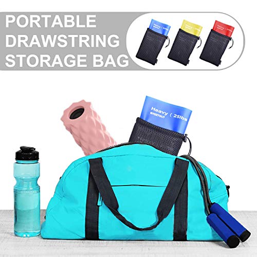 Libretto guida e borsa portatile: con un esclusivo libretto in dotazione e una borsa con coulisse, le fasce di resistenza sono facili da trasportare e puoi allenarti ovunque e in qualsiasi momento. È perfetto per allenarsi a casa, ufficio, palestra, all'aperto o anche quando sei in viaggio.