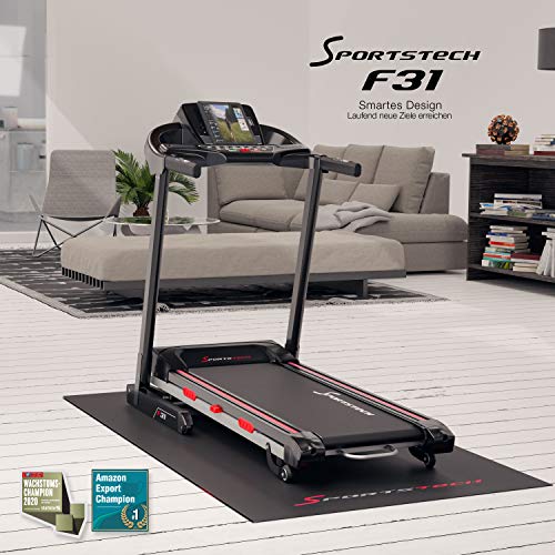 Sportstech F26 & F31 Tapis Roulant Professionale con Smartphone App Controllo cardiaco del valore di 39,90 € incluso - Mp3 Aux Bluetooth 4 PS 16 km/H HRC Training - Compatto Pieghevole Salvaspazio