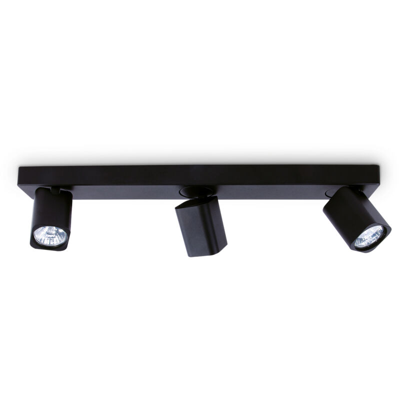Collezione Rudy LA DIREZIONE CHE VUOI TU Spot Contemporaneo Rudy Alluminio Nero 3 Luci GU10 35W 3000K IP20 A++ h.max.11 h.min.9 D. L.54 P.12,5 Lampadina inclusa. Montatura in alluminio pressofuso verniciato a polveri bianco o nero. Diffusori orientabili in rotazione e inclinazione.