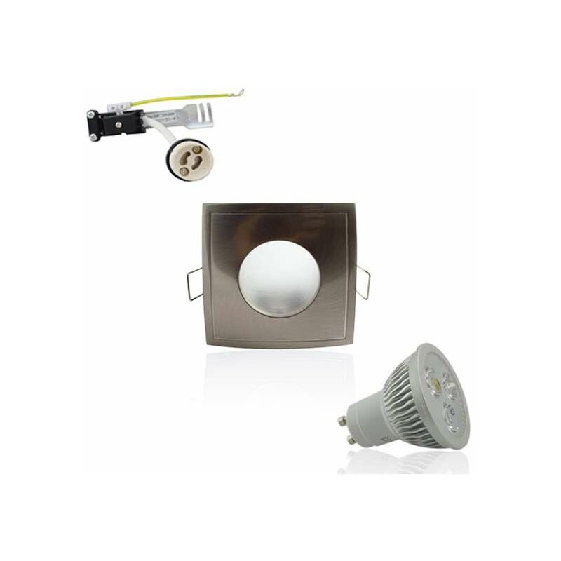 Kit spot LED GU10 da incasso quadrato bianco impermeabile. Questo kit all-in-one comprende: un supporto spot da incasso impermeabile IP65 bianco fisso + una presa in ceramica GU10 + una lampadina LED GU10 4W illuminazione 35W - Ombrello chiaro Bianco naturale 4500K. Diametro di recesso 65mm. Supporto in alluminio spazzolato. Altezza 55mm. 4500K 4W 35W 350 60° IP65 Kit impermeabile GU10 IP65 4W illuminazione 35W Questo set include uno lampadina GU10 4W equivalente 35W. Questo punto ha un angolo di illuminazione di 50° e una potenza luminosa di 350 lumen. Il bulbo è associato a una presa in ceramica bianca GU10 che consente un collegamento diretto alla griglia elettrica 220V e un supporto piazzale in alluminio da incasso per incassare la lampadina nel soffitto in modo a tenuta stagna. Ideale per bagni o camere umide. Imballaggio: Kit tutto compreso Consumo di watt: 4 W Materiale: Alluminio Indice di protezione IP: IP65 Colore: Bianco Modulo: Quadrato Attacco: GU10 Flusso luminoso
