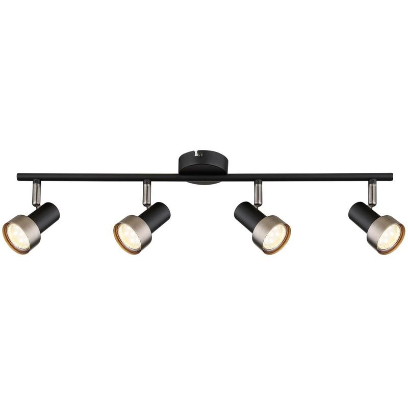 Spot Light Konrad Metal Matt Black Silver GU10 4 x Max.50W L: 60 cm B: 12,5 cm Ø5,5 cm Dimmessibile Dimensioni in mm: Lunghezza: 600, larghezza: 120, Altezza: 125, diametro: 55 peso in kg: 0.66 Tipo di agente luminato/versione: Gu10 luminoso: No Prestazioni massime in Watt: 4 x Max.50w Classe di protezione: ip20 Dimmbar: Sì Materiale per la casa: Metal Colore abitativo: Mattschwarz Materiale vetro/dispensa: Metal Colore vetro /ombrello: argento