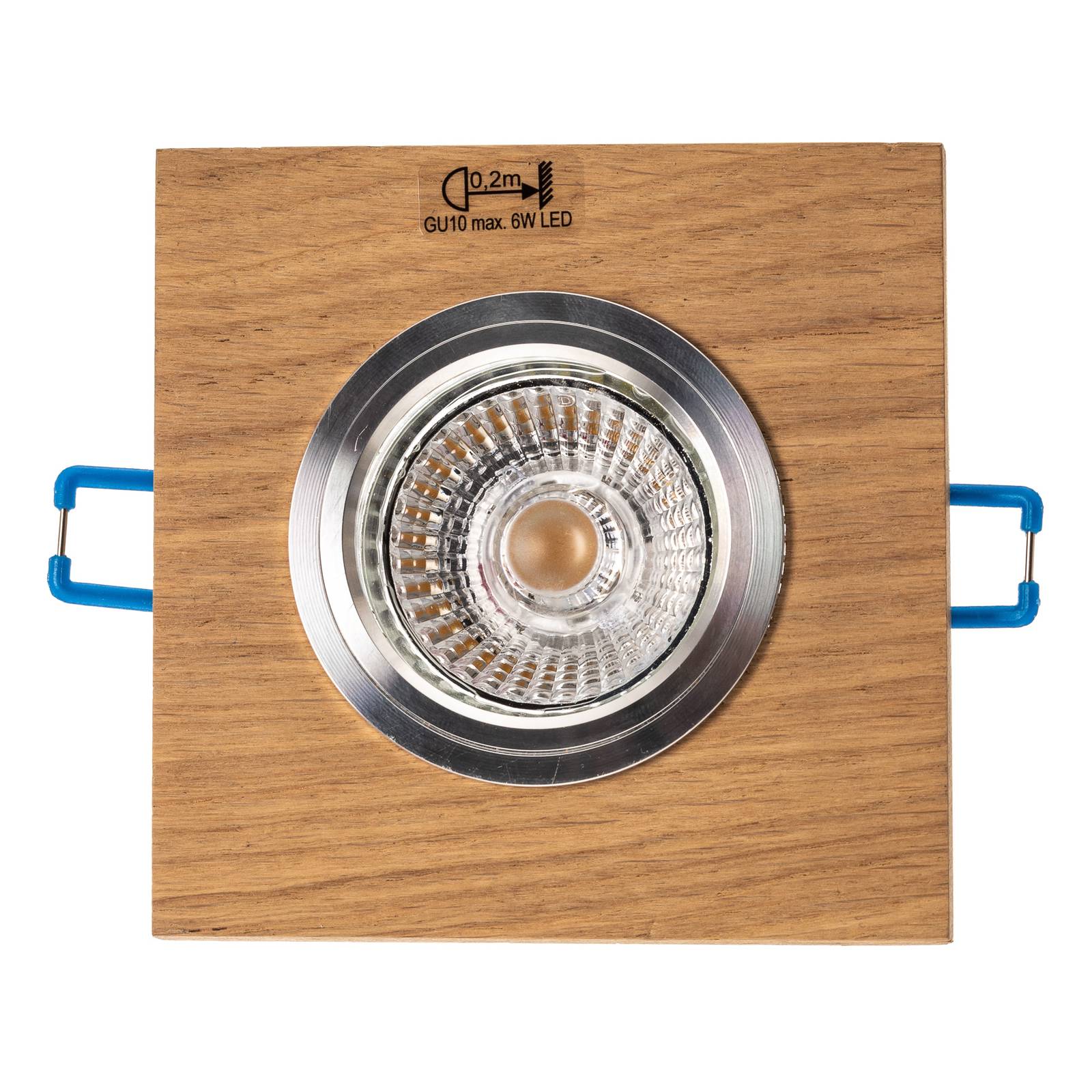 Faretto dal design naturale: luce da incasso Vitar in legno Una cornice quadrata in legno di quercia oliata caratterizza la plafoniera a incasso Vitar. Questo la rende ideale per arredamenti in stile scandinavo o in stile country contemporaneo. Una lampadina LED inclusa con base GU10 funge da sorgente luminosa. Il LED emette una luce bianca calda e morbida, ideale per ambienti accoglienti. Utilizzato singolarmente per l'illuminazione a spot o in fila per illuminare un corridoio, ad esempio, il faretto a LED da incasso Vitar può essere utilizzato per diverse soluzioni di illuminazione.