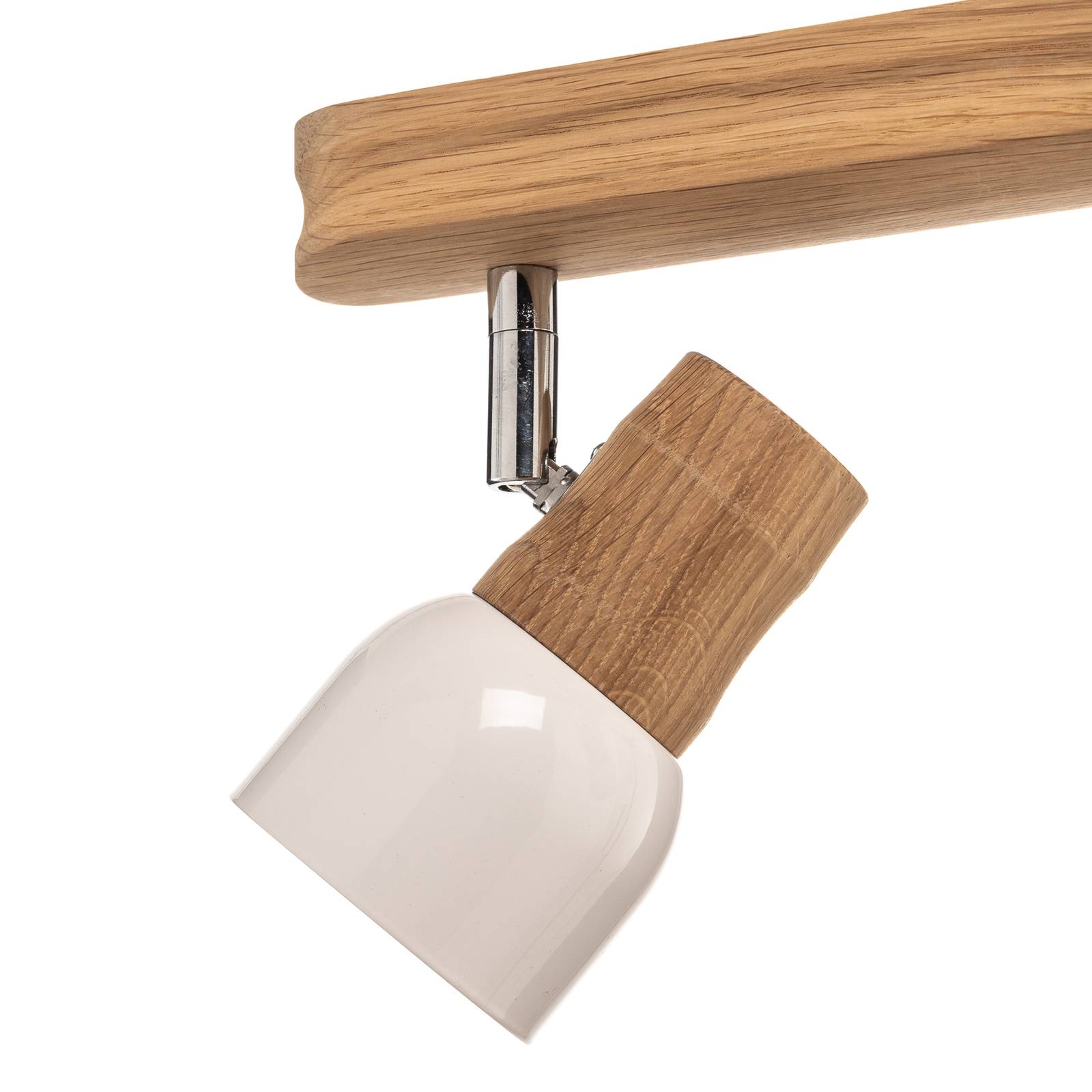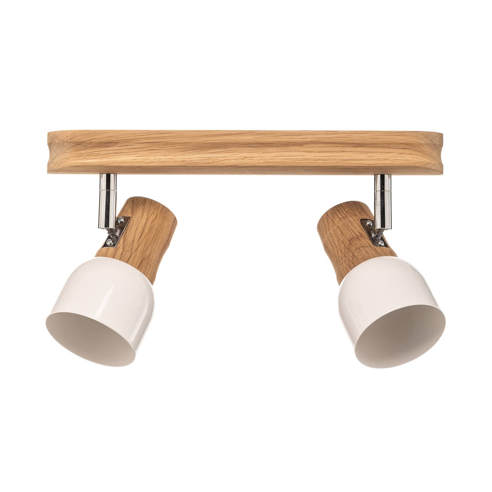 Plafoniera Svantje a 2 luci con design in legno naturaleI due paralumi della plafoniera Svantje possono essere regolati a qualsiasi angolazione, in modo da indirizzare la luce esattamente dove si desidera. Ma anche il design della plafoniera parla da sé, perché la combinazione degli elementi in legno di quercia oliata del paralume e della cornice del soffitto con gli elementi metallici in bianco opaco e cromo lucido fa sì che la plafoniera abbia un aspetto moderno e naturale, in modo da essere un discreto richiamo visivo sul soffitto.