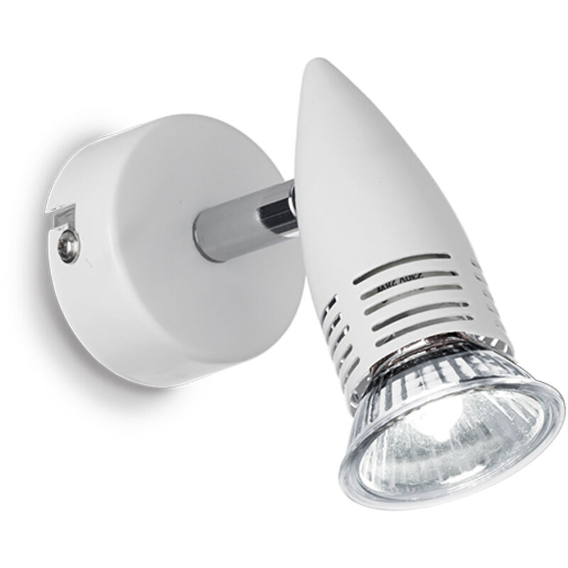 LAMPADA DA PARETE ALFA AP1 BIANCO Ideal-Lux Dimensioni: Articolo: L 60 x H 110 x P 110 mm Base Attacco Rosone: D 60 mm Caratteristiche: Peso: 0,17 kg Pezzi Per Scatola: 1 Lampadina Inclusa: Sì Kit Fissaggio: No Attacco Portalampada: GU10 Luci: 1 Volt: 220-240 V AC Watt: GU10 max 1 x 50W IP: 20 Classe: 1 Materiale: ME Finitura: BIANCO Colore Rosone: BIANCO Scatola: 8x16x8h cm 0,23kg Scheda Tecnica