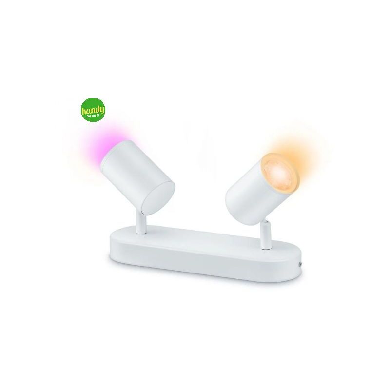 Spot Wiz prodotto dal brand Philips. Spot Wiz da 2 luci di colore bianco, controllabile tramite WiFi e Bluetooth. Compatibile con lampadine GU10. . Dimenioni: 25 x 10,5 x 12,3 cm.
