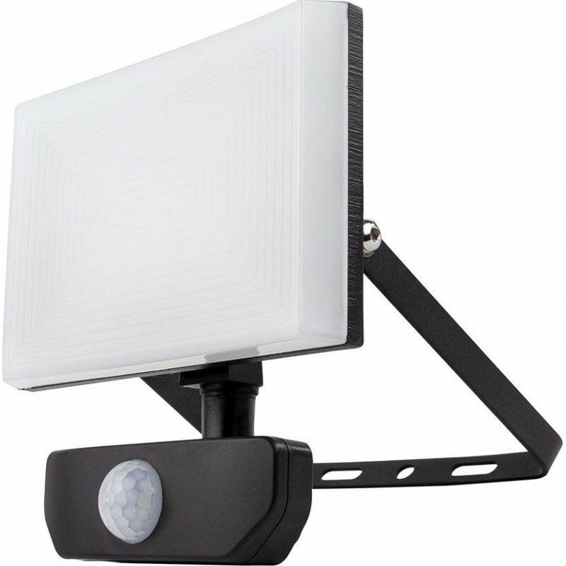 Faretto a LED Supra 20 W con rilevatore di movimento • Solido alloggiamento in metallo infrangibile • Design piatto con braccio di montaggio angolato girevole di 180° • Tecnologia LED economica con luce efficiente in colore bianco neutro • Basso consumo energetico e lunga durata • Collegamento flessibile tramite cavo di collegamento in gomma di circa 18 cm • Angolo di rilevamento: 120° • Campo di rilevamento: 6 m - 10 m (regolabile) • Tempo di follow-up: 10 s - 8 min (regolabile) • Luminosità di accensione