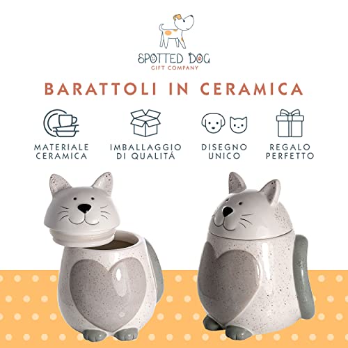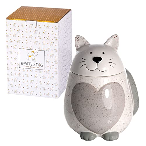 SPOTTED DOG GIFT COMPANY - Barattolo da cucina a forma di gatto con cuore - per tè, caffè e zucchero - idee regalo per donna, uomo e amanti dei gatti - in ceramica - bianco