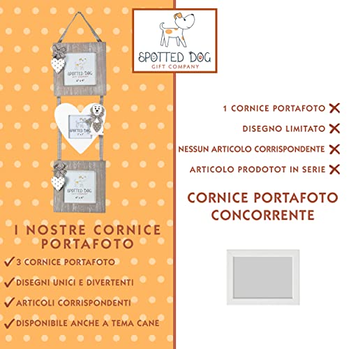 SPOTTED DOG GIFT COMPANY - Cornice Portafoto in Legno, Forma di Quadrato e Cuore da Appendere, Cornice da Parete 3 Triplo Cornice per Foto Mutiple, Grigia Bianca con Motivo Cane