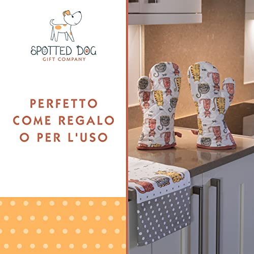 SPOTTED DOG GIFT COMPANY - Guanti da Forno con Motivo Gatti - Resistente al Calore - Idee Regalo per Donna e cuochi - 2 Pezzi