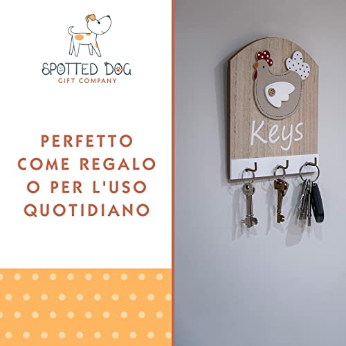 SPOTTED DOG GIFT COMPANY - portachiavi da parete a forma di gallina con scritta 'keys' - con ganci - idee regalo - in legno - naturale