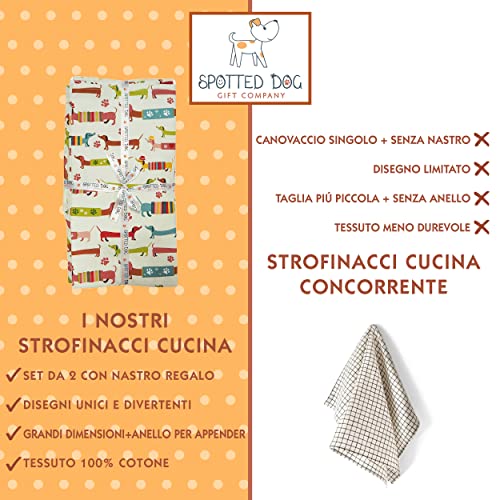 SPOTTED DOG GIFT COMPANY - Strofinacci da Cucina con Motivo Cane Bassotto - Lavabili in Lavatrice - Idee Regalo per Padroni di Cani - Cotone - 50 x 70 cm - Set da 2