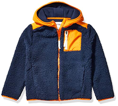 Spotted Zebra Giacca con Cappuccio in Pile Sherpa Bambini e Ragazzi, Blu Marino/Arancione, 8 Anni