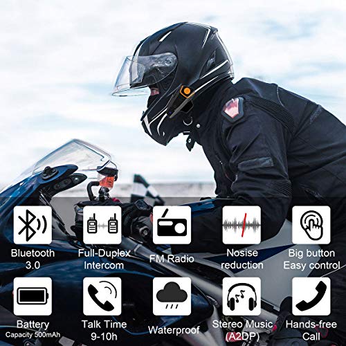 【Senza Fili&Radio FM】 È possibile effettuare chiamate in vivavoce sul telefono cellulare Bluetooth, ascoltare musica o istruzioni vocali della navigazione GPS e attivare la conversazione intercom wireless per pilota-pilota o pilota-passeggero. Anche la sua radio FM integrata consente ai tuoi viaggi di guida più meravigliosi.