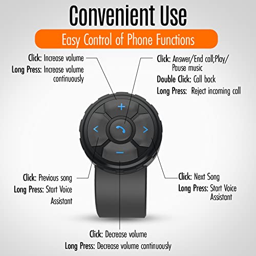 Compatibilità universale: Questo telecomando per telefono è compatibile con la maggior parte degli smartphone e degli auricolari Bluetooth sul mercato, rendendo facile controllare le chiamate telefoniche, regolare il volume, saltare le tracce e mettere in pausa/riprodurre la musica mentre si guida una bicicletta o una motocicletta.