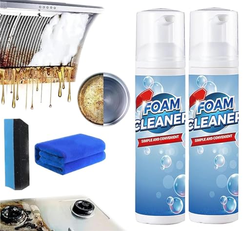 Spray multiuso in schiuma, spray multiuso per la pulizia, spray per la pulizia delle bolle, detergente per macchie di olio pesante, spray per rimuovere grasso e sporcizia ostinati (2 pezzi)