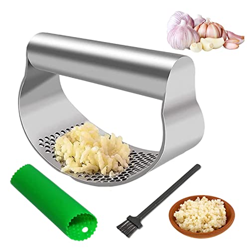 Spremiaglio, Spremi Aglio in Acciaio Inox e Pela Aglio in Silicone,Spremi Aglio Con Pelapaglio Silicone e Pennello,Facile da Pulire