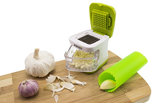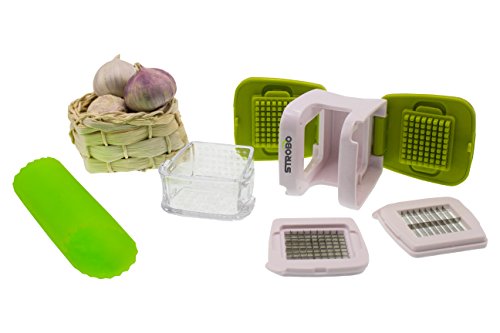 ✅ Qualità: attrezzo per tagliare l'aglio a cubetti + sbucciatore in silicone dal design elegante e fattura di alta qualità.