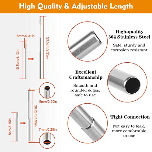 【Con cannucce e spazzola per la pulizia】 Forniamo 3 cannucce retrattili in acciaio inossidabile 304 e 1 spazzola per la pulizia retrattile in acciaio inossidabile. Le cannucce sono pieghevoli ed espandibili da 3,2 "a 8". Inoltre, dopo aver gustato il succo con la cannuccia. Con la spazzola per la pulizia retrattile in acciaio inossidabile, puoi pulire facilmente l'interno della cannuccia dall'alto verso il basso.