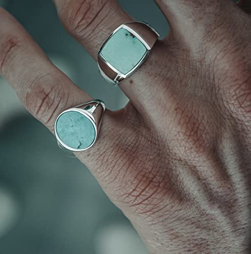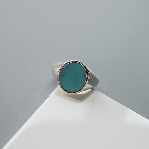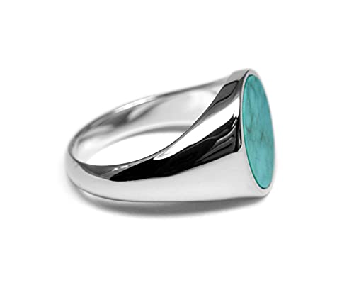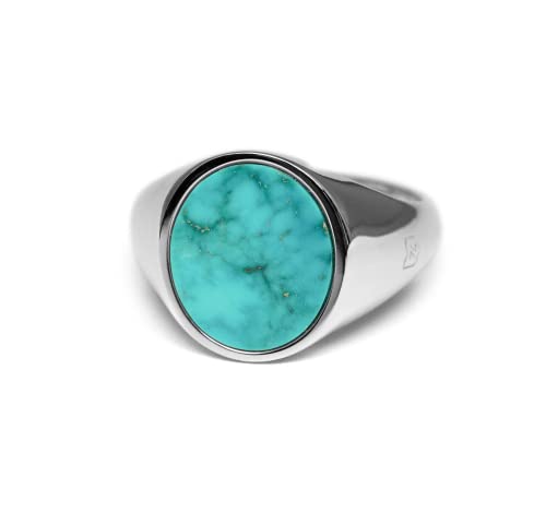 Sprezzi anello con sigillo da uomo in argento sterling 925 ovale lucido levigato con pietra naturale turchese | Dalla Germania gioielli da uomo moderni in argento massiccio con cofanetto regalo