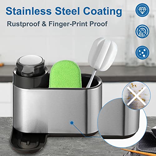 SPRIME Organizzatore per Lavello Cucina con Dispenser di Sapone ricaricabile, Porta Spugne Lavello Cucina in acciaio inossidabile, portaoggetti da lavandino con vaschetta di scarico
