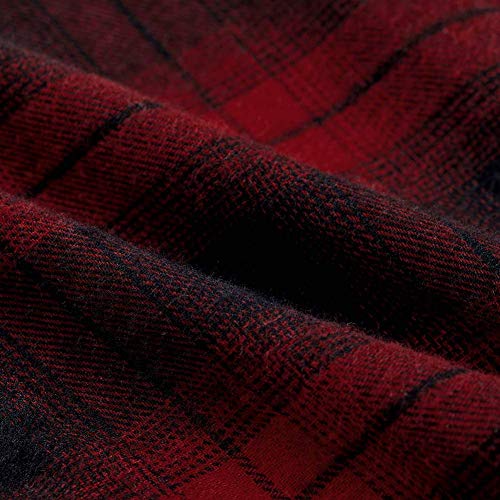Spring&Gege Camicia da Ragazzo a Maniche Lunghe in Flanella Button Down Shirt a Quadri per Bambini, Rosso Nero, 7-8 Anni