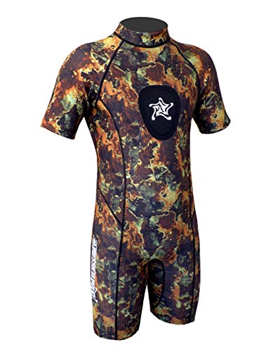Mutino mimetico uomo in neoprene bifoderato da 2,5 mm, carichino sternale, tenute con bordino stagno e zip posteriore ykk