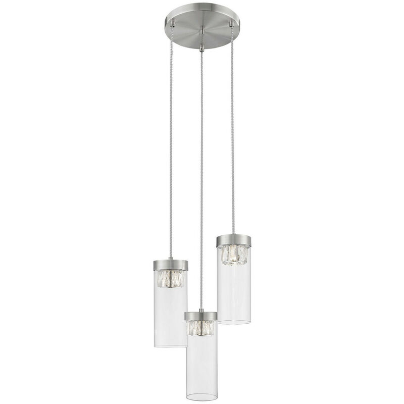 Spring Lighting Soffitto a sospensione a grappolo contemporaneo a 3 luci in nichel satinato, cristallo | Finitura: Nichel satinato | Materiale: vetro, cristallo, metallo | Grado di protezione IP: IP20 | Altezza minima: 37,5 cm | Altezza massima: 162 cm | Diametro paralume: 11 cm | Altezza paralume: 25 cm | Tipo di lampada: G9 | N. di lampade: 3 | Lampadina inclusa: no | Dimmerabile: Sì - Necessaria una lampadina dimmerabile | Peso: 2,8 kg | Potenza (max): 28 W
